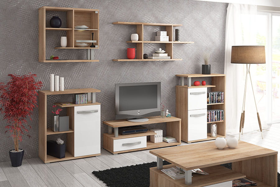 Kolekcja ANGEL to nowoczesne meble przeznaczone do aranżacji pokoju dziennego lub pokoju młodzieżowego. System mebli został wykonany z wysokiej jakości płyty laminowanej. Kolekcja została wykonana w kilku wersjach kolorystycznych do wyboru, dzięki czemu na pewno znajdziemy coś dla siebie. Dzięki użytym do produkcji materiałom mamy pewność, że meble będą nam służyć przez długie lata.