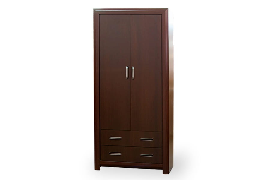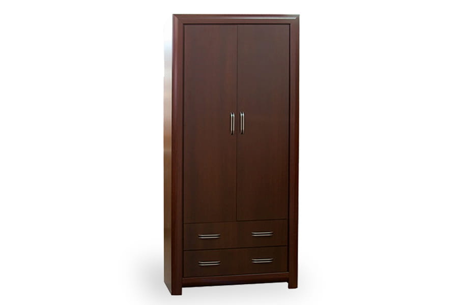 - szafa posiada dwudrzwiowy front oraz dwie szuflady, wewnątrz znajduje się półka z drążkiem na wieszaki