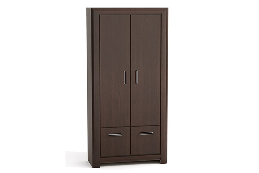 - szafa posiada dwudrzwiowy front oraz szafkę dwudrzwiową, wewnątrz znajduje się półka z drążkiem na wieszaki