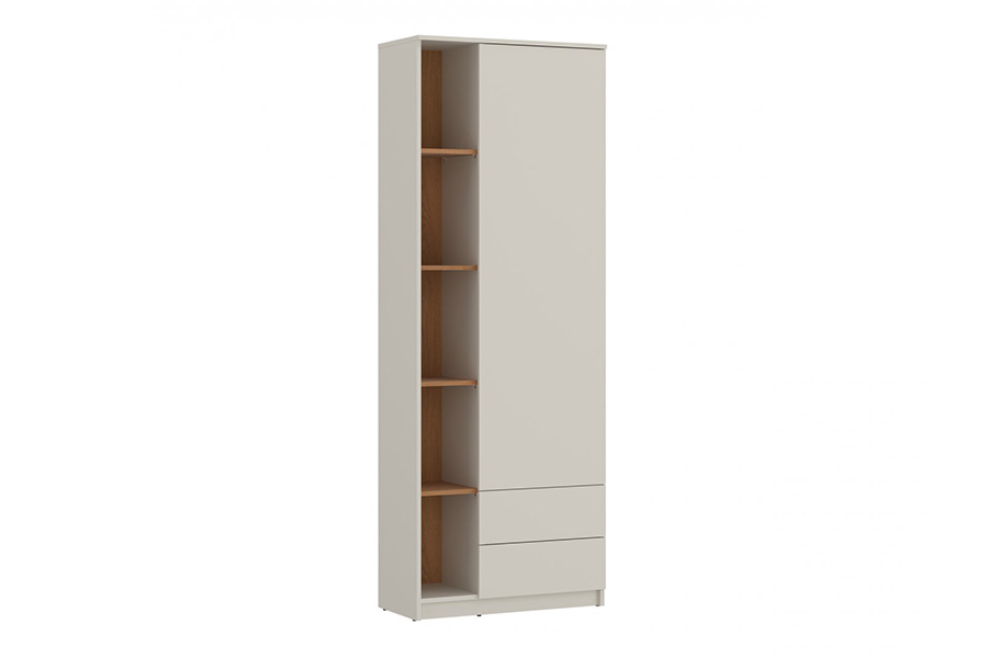 - Asymetria i prostota designu, stylowe zestawienie odcienia Kaszmiru z naturalnym, karmelowym wybarwieniem dębu (Dąb Karmel), a także niezwykła pojemność sprawiają, że szafa z kolekcji mebli FANO staje się funkcjonalnym elementem aranżacji pokoju młodzieżowego. Jej jasna kolorystyka i ergonomiczne wymiary pozwalają na łatwość zastosowania w niewielkich przestrzeniach, zapewniając dużą pojemność przechowywania.