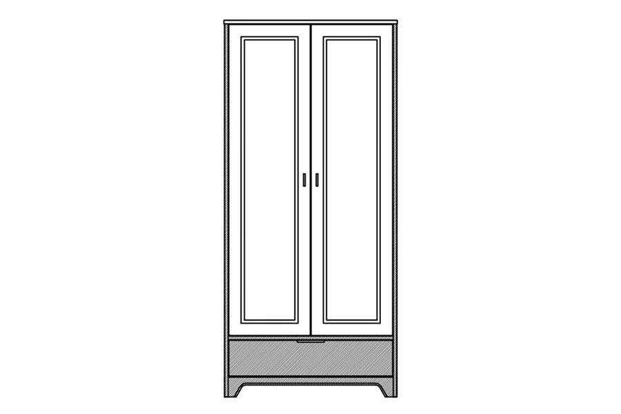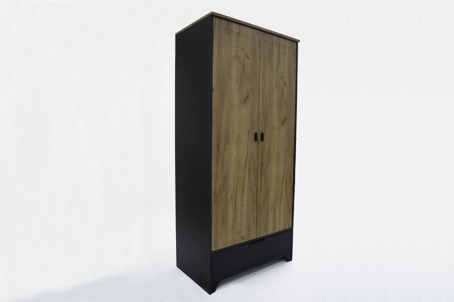 - Szafa składa się z części dwudrzwiowej. Wewnątrz u góry półka oraz drążek na ubrania