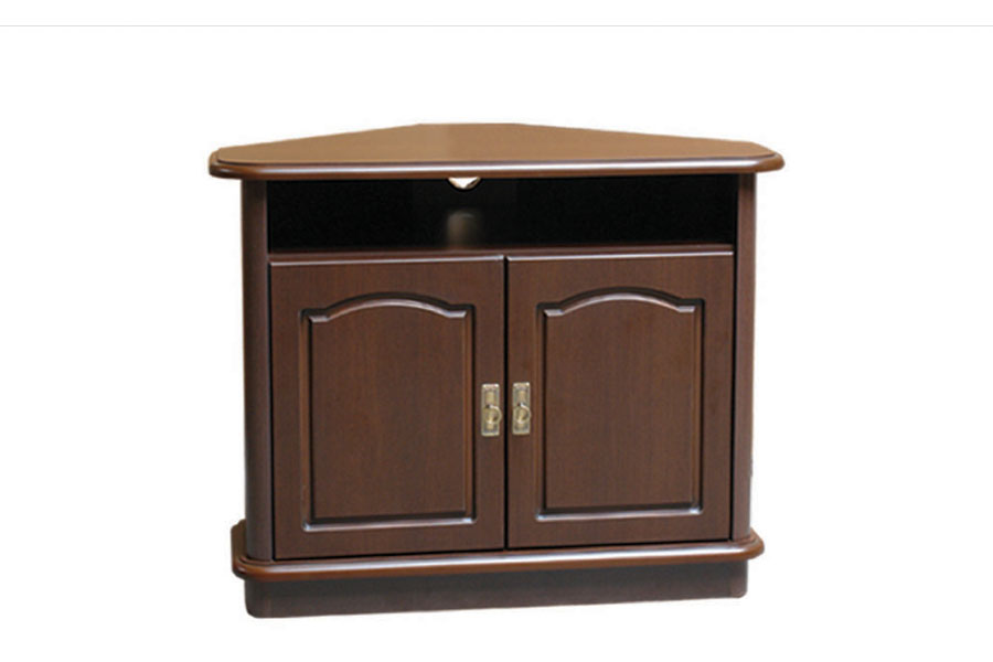 - Szafka RTV narożna składa się z części dwudrzwiowej oraz półki. Wewnątrz za drzwiami posiada jedną półkę.