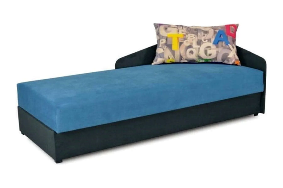Tapczan Joy to mebel w sam raz do pokoju młodzieżowego. Ciekawy dobór tkanin sprawia, że przyciąga wzrok i doskonale wpisuje się w estetykę nowoczesnego wnętrza. Zagłówek, pojemnik na pościel oraz wezgłowie i boczna barierka zapewniają wysoki komfort użytkowania oraz funkcjonalność.