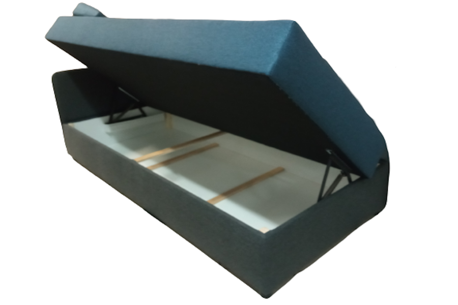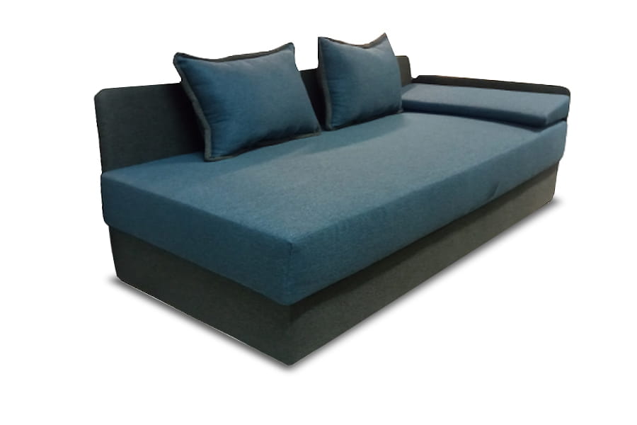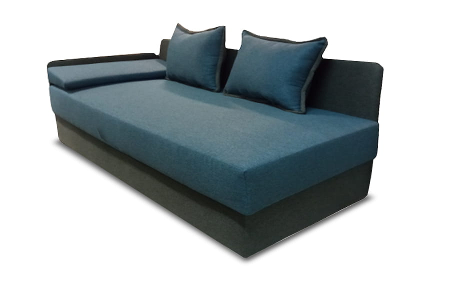 Tapczan Mango to mebel w sam raz do pokoju młodzieżowego. Ciekawy dobór tkanin sprawia, że przyciąga wzrok i doskonale wpisuje się w estetykę nowoczesnego wnętrza. Poduchy oparciowe, zagłówek, pojemnik na pościel oraz wezgłowie i boczna barierka zapewniają wysoki komfort użytkowania oraz funkcjonalność. Łóżko jest wygodne dzięki zastosowaniu sprężyn bonellowych, a prosta w obsłudze funkcja spania idealnie sprawdza się w pokoju dziecięcym i młodzieżowym. Dostęp do pojemnika jest bardzo łatwy. Wystarczy siedzisko podnieść do góry, by zyskać dostęp do pojemnego schowka, który doskonale sprawdza się do trzymania kołdry, poduszek i koców.