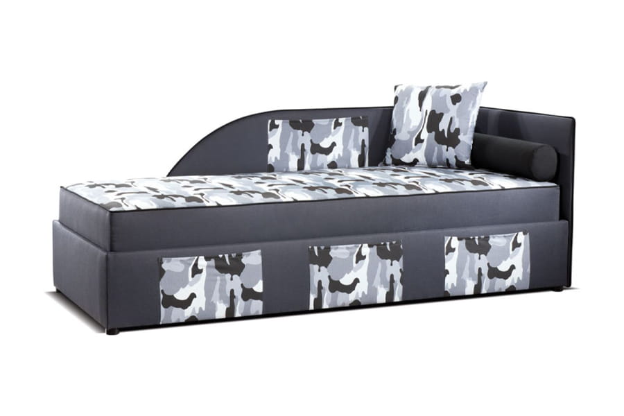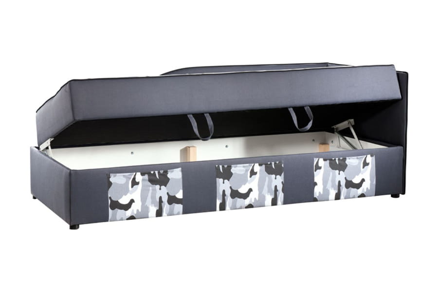 POLO „ubrany” w tkaniny moro – ten militarny styl kochają chłopcy i dziewczęta. Dodatkowo został wyposażony w efektowne kieszenie, które mogą posłużyć za schowek na książkę, ulubionego misia czy pamiętnik nastolatki. To strefa spokoju i relaksu najmłodszych. Tapczan posiada materac na sprężynach bonellowych, pojemnik na pościel oraz wspomaganie otwierania. Zachęcamy do obejrzenia filmu pokazującego funkcje mebla.