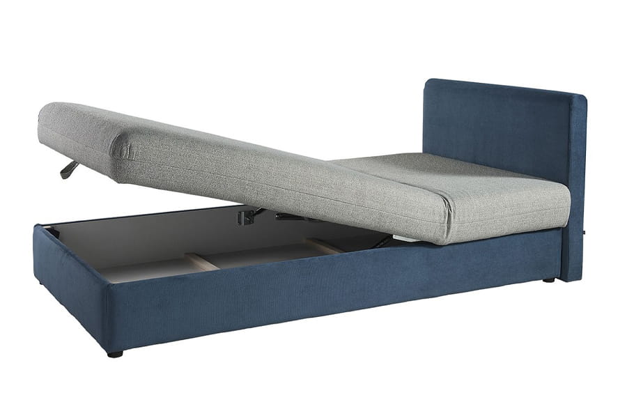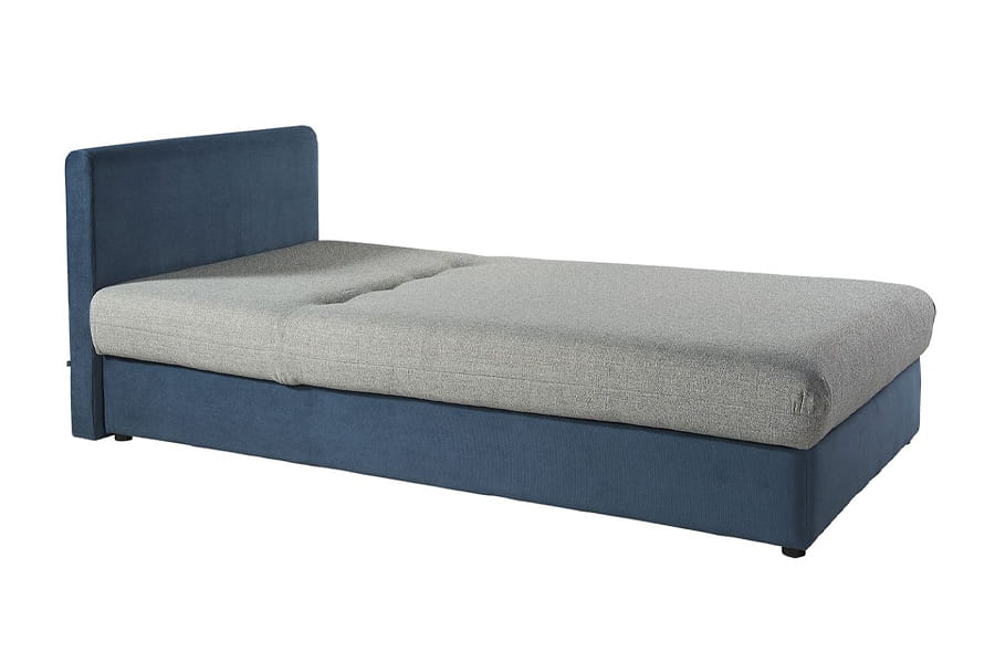 Tapczan jednoosobowy Sigma to propozycja dla osób, które lubią leniuchować i wygodnie spać. Duża powierzchnia spania 200×110 tworzy przestrzeń dla wypoczynku i relaksu. Tapczan ma regulację w górnej części zagłówka z czterema stopniami regulacji. Leżysko i skrzynia mogą być wykonane w dowolnej kombinacji tkanin ze wzornika, co pozwala na stworzenie ciekawych aranżacji mebla. Leżysko wypełnione jest sprężyną bonellową, co zapewnia wysoki komfort spania. Mebel ma estetyczny pojemnik na pościel z białej laminowanej płyty.