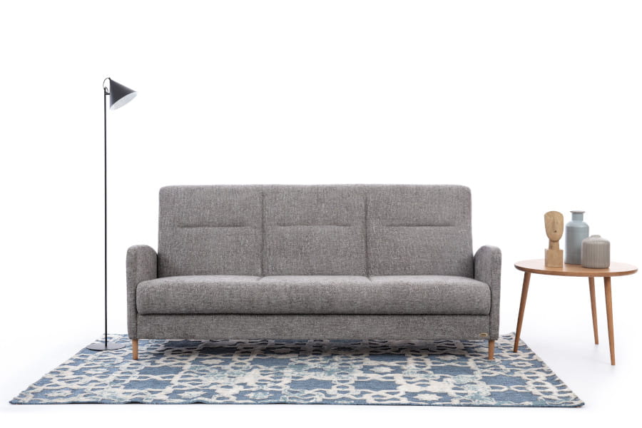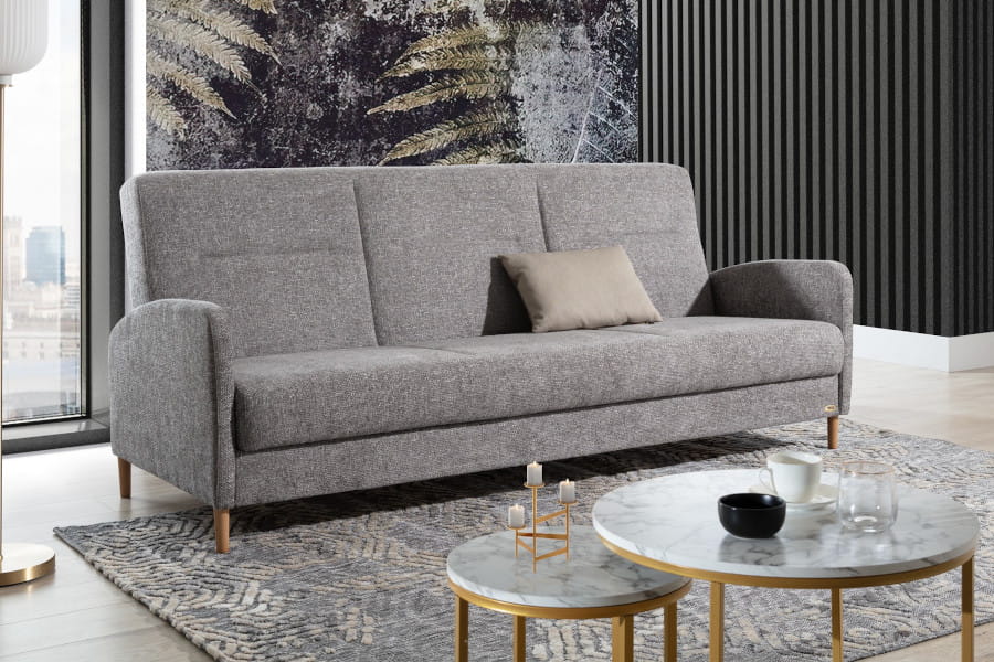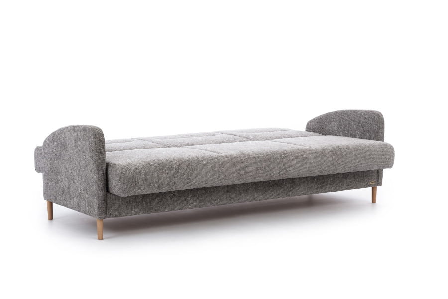 - wersalka z funkcją spania ( rozkładanie typu klik-klak typu wersalkowego ) jest szybki i prosty w obsłudze. Pierwszym krokiem, przy rozkładaniu mebli z tego typu mechanizmem, jest podniesienie siedziska, a następnie dociśnięcie go w stronę oparcia do momentu usłyszenia charakterystycznego dźwięku “kilk”. Kolejnym krokiem jest opuszczenie siedziska. Wtedy słyszymy “klak”, który oznacza, że wersalka jest gotowa do spania. Charakterystycznym dla sof z mechanizmem klik-klak jest łączenie na środku, które dzieli powierzchnię na dwie części. W nowoczesnych modelach, w przeciwieństwie do ich starszych wersji, łączenie to jest niemal niewyczuwalne. Obie części mebla tworzą równą powierzchnię, co znacząco podnosi komfort spania. Wersalki wymagają odsunięcia od ściany i najczęściej posiadają pojemnik na pościel. )