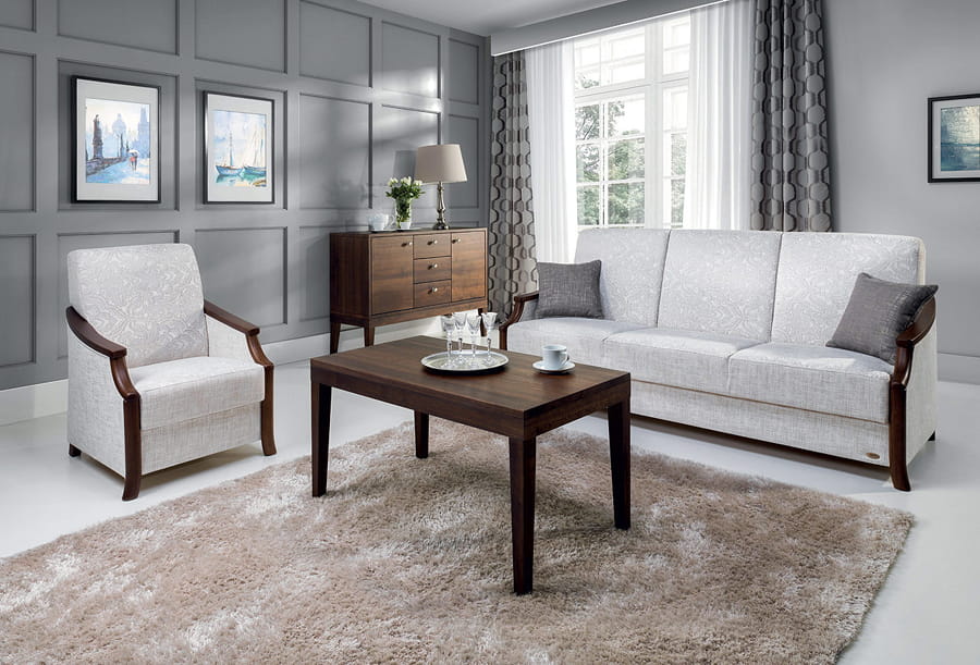 Widoczne tkaniny oraz kolor drewna mają charakter podglądowy i mogą odbiegać od rzeczywistych, wzorniki tkanin i kolorów dostępne są w punktach sprzedaży.