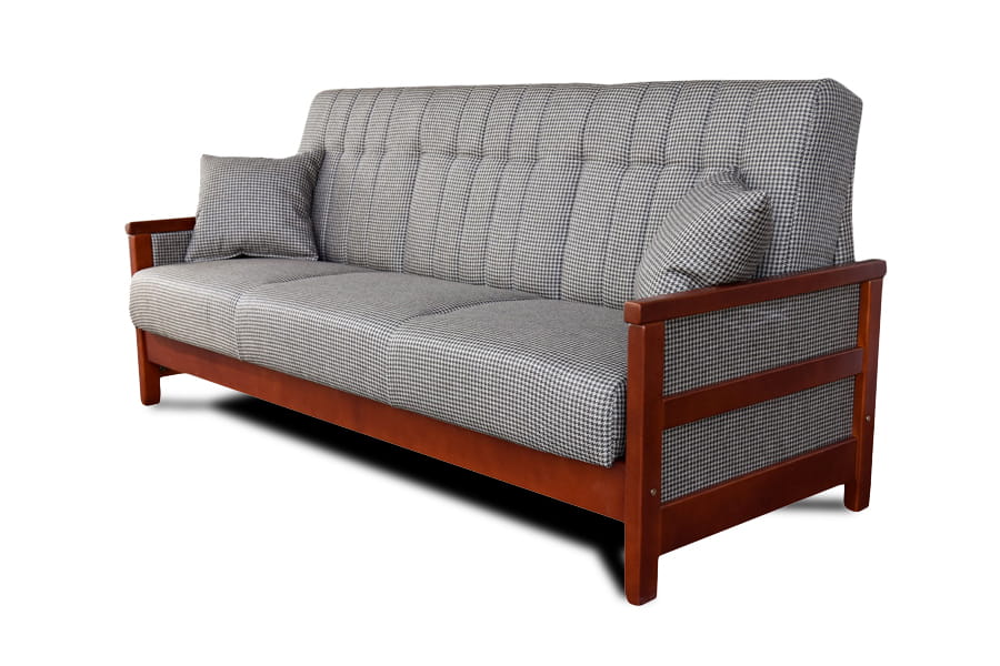 - mebel posiada wysokie oparcie, wąskie drewniane podłokietniki