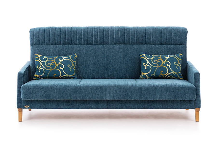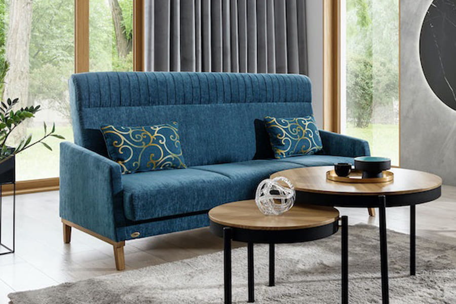 - rozkładanie typu klik-klak ( typu wersalkowego ) jest szybki i prosty w obsłudze. Pierwszym krokiem, przy rozkładaniu mebli z tego typu mechanizmem, jest podniesienie siedziska, a następnie dociśnięcie go w stronę oparcia do momentu usłyszenia charakterystycznego dźwięku “kilk”. Kolejnym krokiem jest opuszczenie siedziska. Wtedy słyszymy “klak”, który oznacza, że wersalka jest gotowa do spania. Charakterystycznym dla sof z mechanizmem klik-klak jest łączenie na środku, które dzieli powierzchnię na dwie części. W nowoczesnych modelach, w przeciwieństwie do ich starszych wersji, łączenie to jest niemal niewyczuwalne. Obie części mebla tworzą równą powierzchnię, co znacząco podnosi komfort spania. Wersalki wymagają odsunięcia od ściany i najczęściej posiadają pojemnik na pościel.