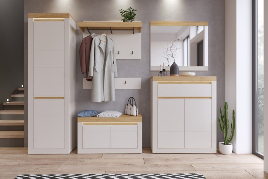 Naxxar od Meble Wójcik to nowoczesny system meblowy charakteryzujący się subtelną elegancją, funkcjonalnością i jasną kolorystyką, zaprojektowany z myślą o aranżacji salonów, jadalni, domowych biur oraz przedpokojów. Dzięki swojej uniwersalności, meble z serii Naxxar dobrze sprawdzają się zarówno w większych salonach, jak i mniejszych mieszkaniach czy przedpokojach.