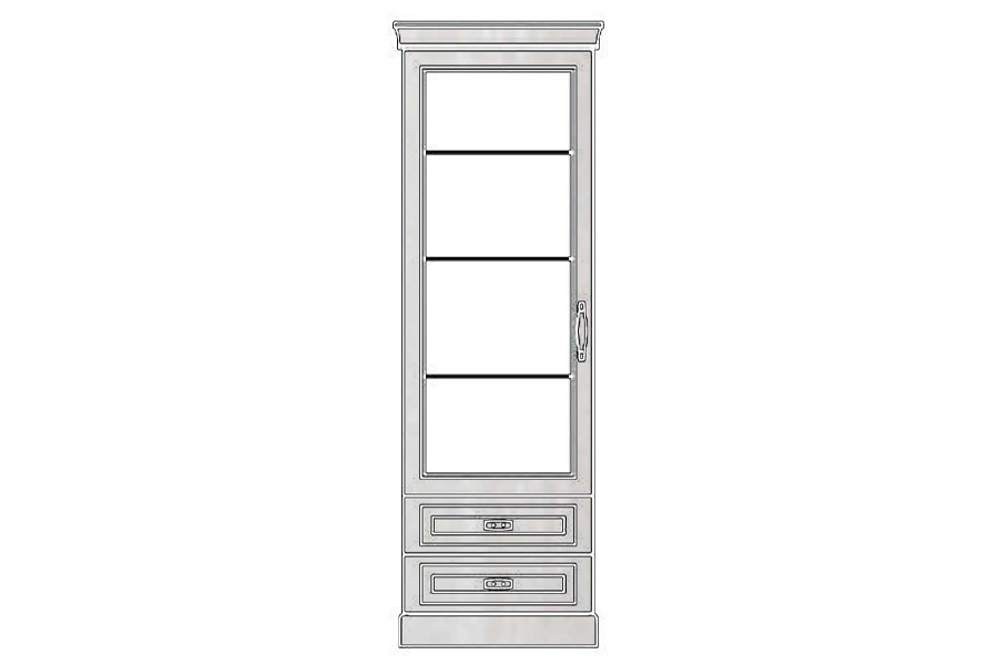 - Witrynaskłada się z części jedno drzwiowej, trzech półek oraz z dwóch szuflad
