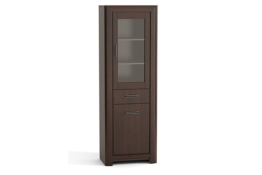 - witryna posiada jednodrzwiowy przeszklony front, szufladę oraz szafkę