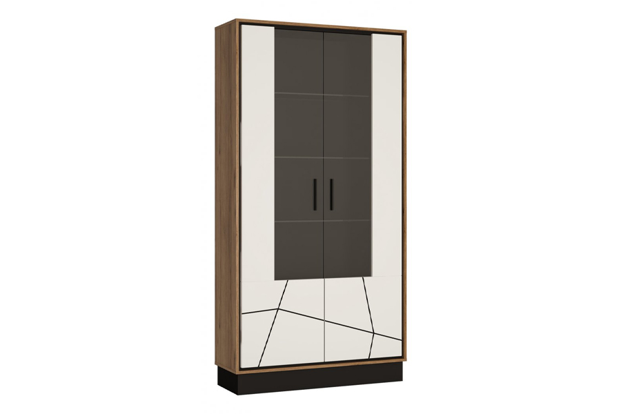 Witryna BROLO 2D - korpus: dąb catania-czarna perła, front: biały połysk
