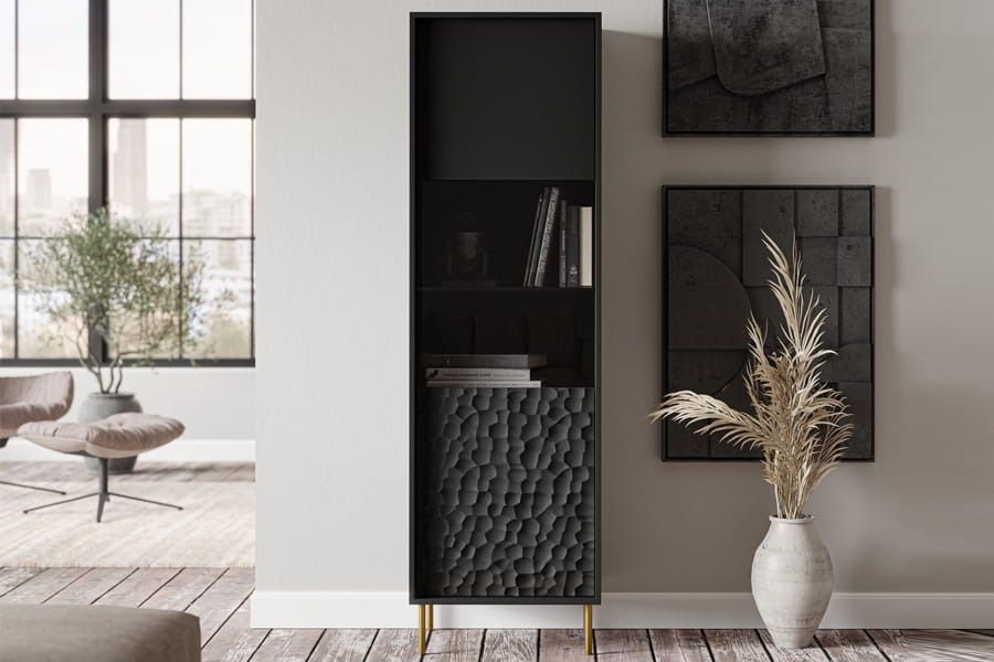 Witryna BULLET W-1 czarna, nogi złote