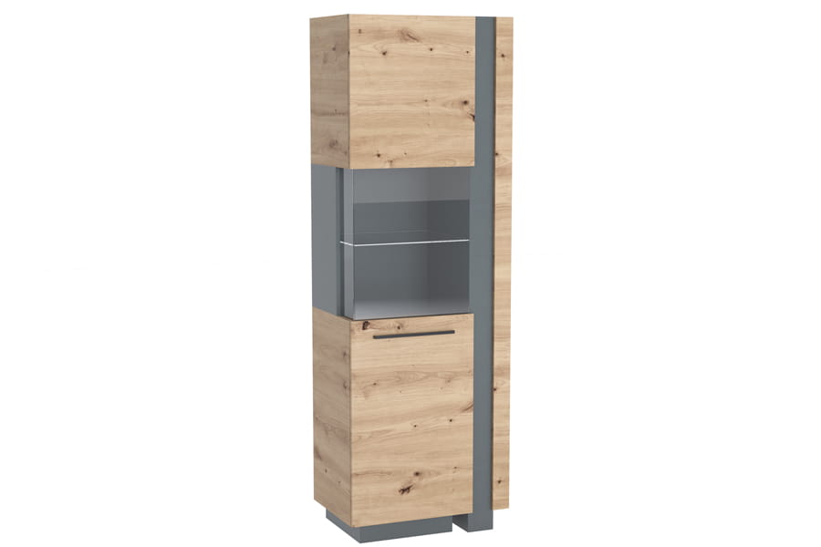 Kolekcja mebli Denali to nowoczesny design z elementami stylu industrialnego. Połączenie naturalnego dekoru dębu artisan z gładkim odcieniem grafitu oraz bieli alpejskiej z grafitem doskonale wpisuje się w aktualne trendy. Ciekawymi akcentami , które wyróżniają kolekcję są narożne przeszklenia witryn oraz długie, metalowe uchwyty w kolorze czarny mat. Komfort użytkowania zapewnią zastosowane akcesoria meblowe takie jak zawiasy i prowadnice z cichym domykiem.