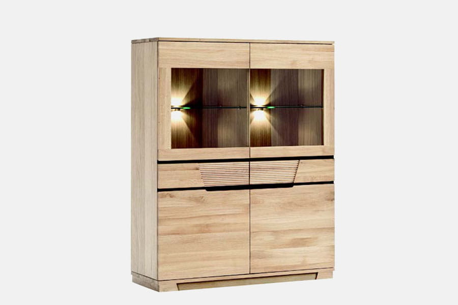 - posiada 2 pełnych drzwi, 2 szuflady oraz 2 fronty szklane. W witrynie z pewnością można pomieścić wiele rzeczy w zależności od potrzeb.