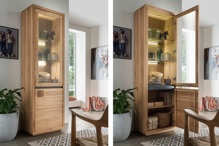 - Przeszklona część to doskonałe miejsce do ekspozycji modnych dekoracji i pamiątek.
