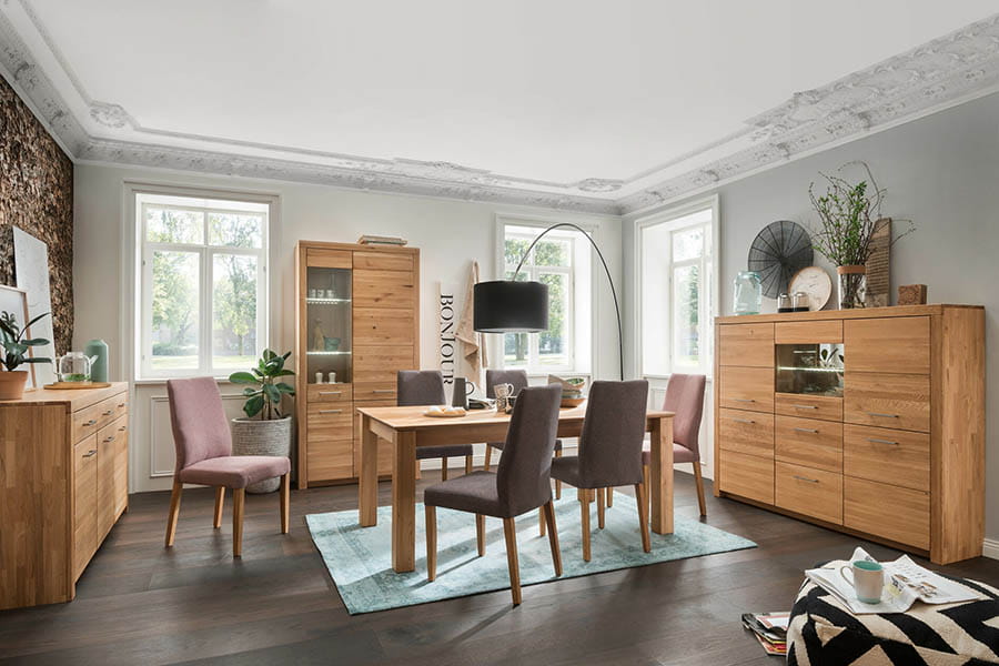 - Proste linie i minimalistyczna stylistka witryny otwierają wiele możliwości aranżacyjnych oraz eksponują największe walory litego dębu.