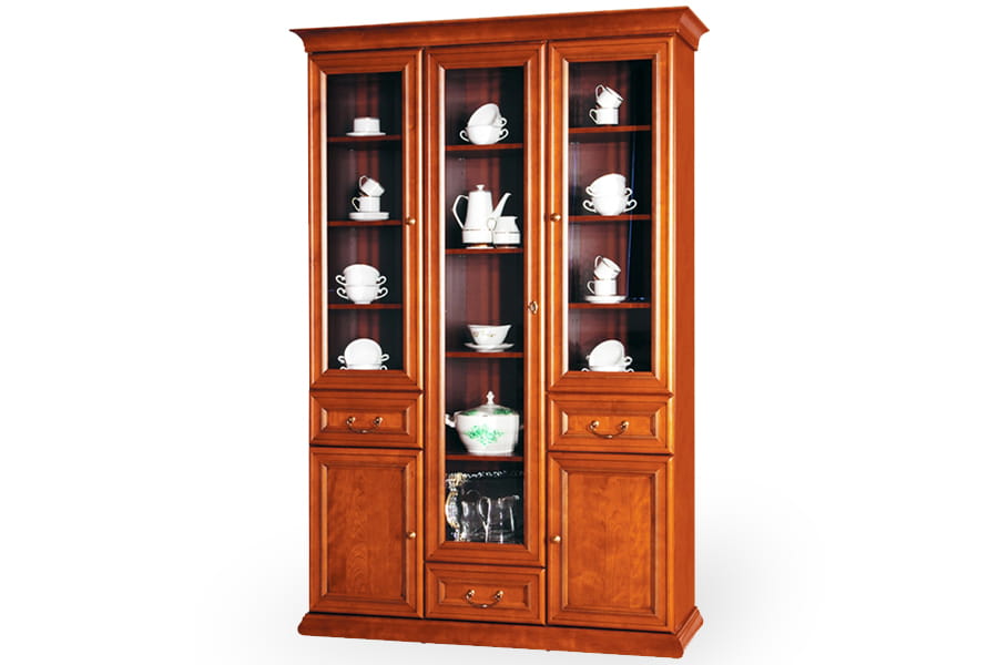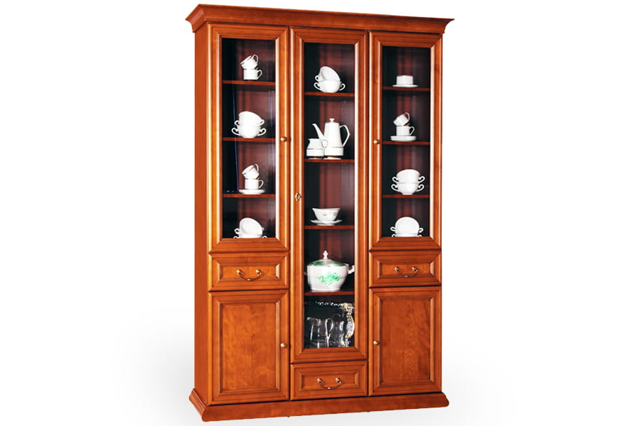 Witryna Martin 3D-KPL producenta Latzke świetnie wkomponuje się w przestronne i elegancko umeblowane wnętrze. Witryna spodoba się tym, którzy szukają mebli eleganckich a przy tym niezwykle solidnych. Cechą dominującą w tym produkcie są typowe dla klasycznego designu ramkowe fronty oraz pięknie wykończone uchwyty. Witryna jest duża, dlatego w jej szafkach i szufladach pomieścisz mnóstwo rzeczy. Trzyczęściowa część oszklona pozwoli również wyeksponować w niej wiele ozdobnych przedmiotów, które warte są wyróżnienia na tle całej aranżacji. Mebel starannie wykonano z kilku niezwykle trwałych materiałów. Domyślny kolor dla tego produktu to czereśnia złocista.