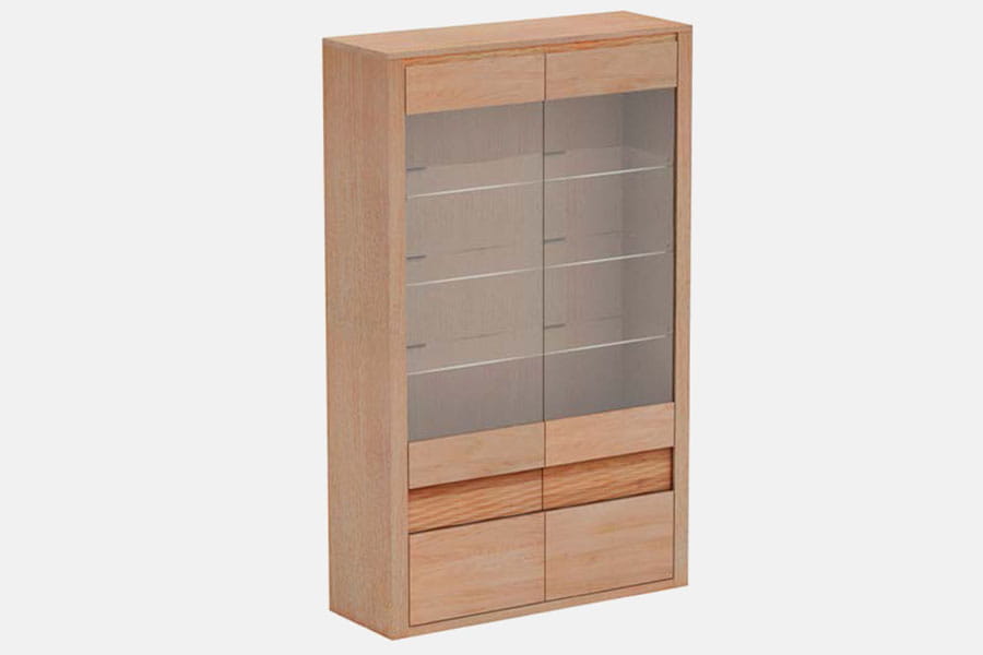 - witryna posiada 2 drzwi z frontem szklanym oraz 2 szuflady
