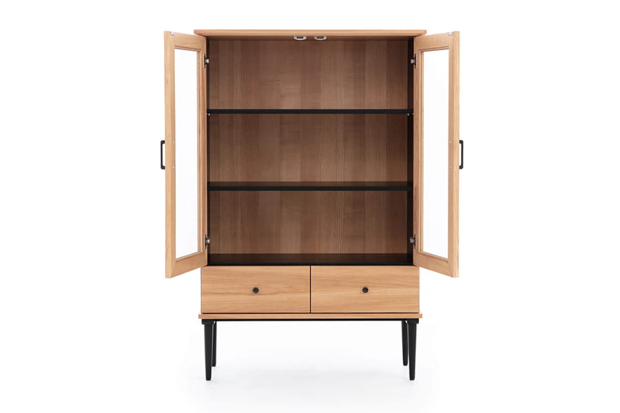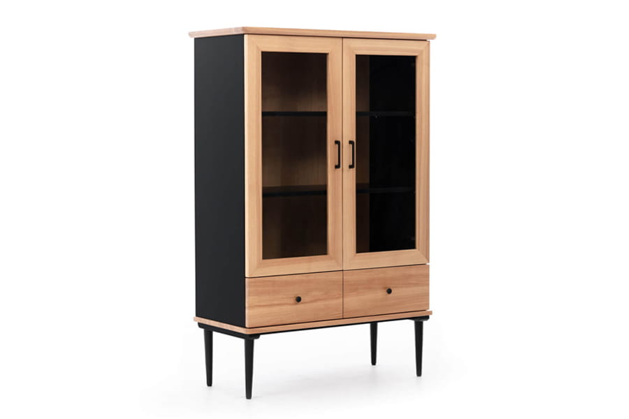 - witryna dwudrzwiowa z dwoma półkami wewnątrz oraz z dwiema szufladami
