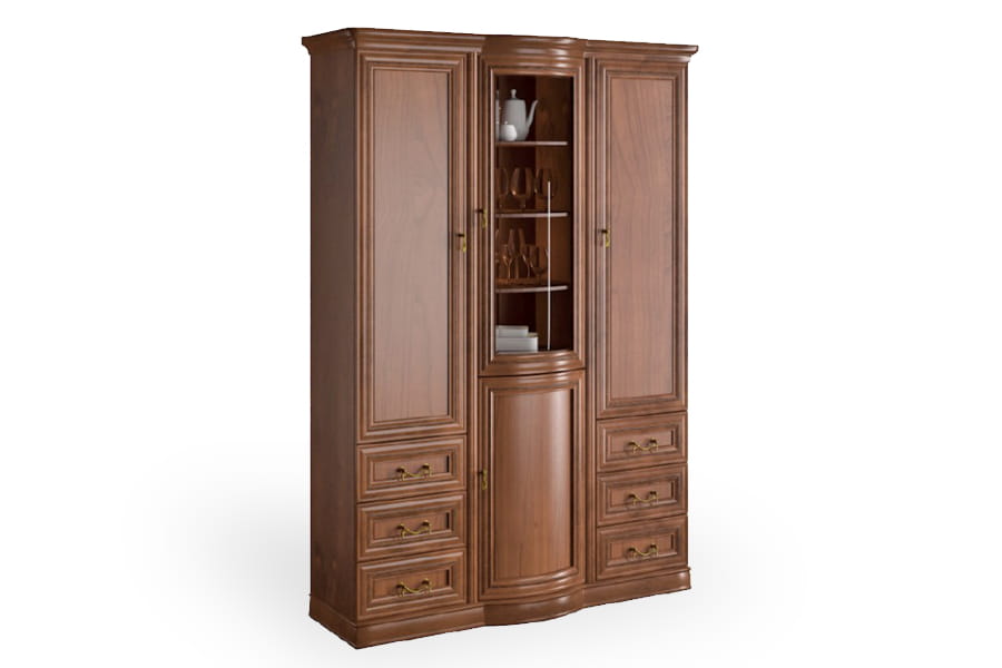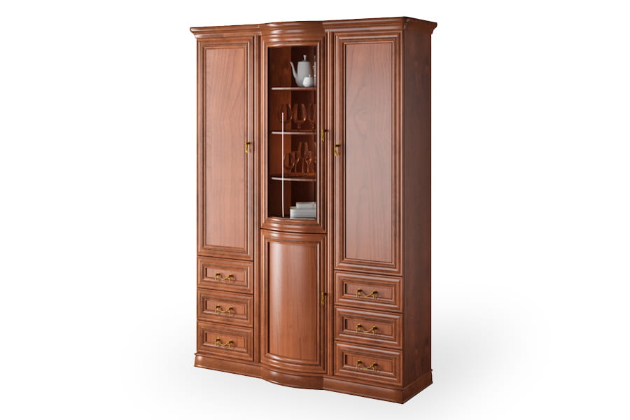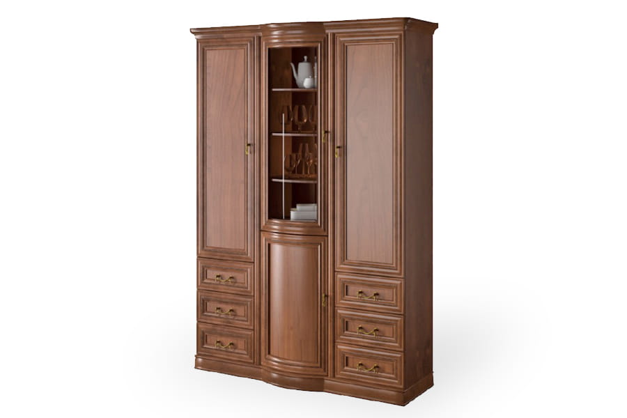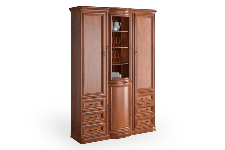 Witryna Rupert 3D-KPL firmy Latzke świetnie wkomponuje się w przestronne i elegancko umeblowane wnętrze. Jest pięknie wykończona, ponieważ posiada rzeźbione detale oraz delikatnie łamany zaokrągloną linią front. Te elementy wraz z ozdobnymi uchwytami są oznaką elegancji i kunsztu klasycznego rzemiosła. W witrynie Rupert każdy przedmiot znajdzie swoje miejsce. Duże szafki i liczne szuflady ułatwią ich segregację a środkowa część z przeszkleniem, do której można dokupić oświetlenie będzie idealna na wartościowe dekoracje. Witryna wykonana jest z wysokiej jakości materiałów, które dbają o jej wysoką trwałość i odporność na niszczenie. Domyślny kolor dla tego produktu to czereśnia liguryjska.