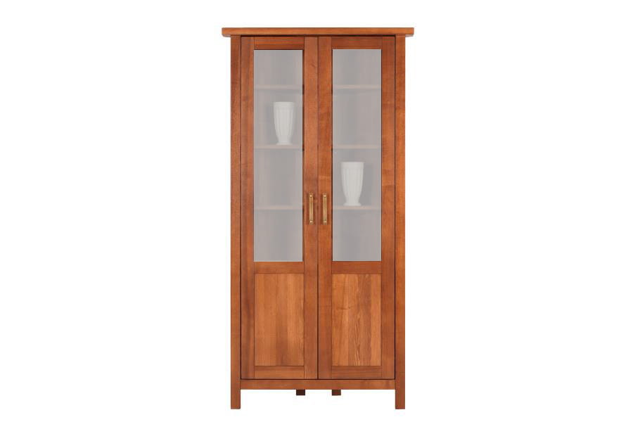 - witryna narożna dwudrzwiowa częściowo oszklona, wewnątrz znajduje się 5 półek