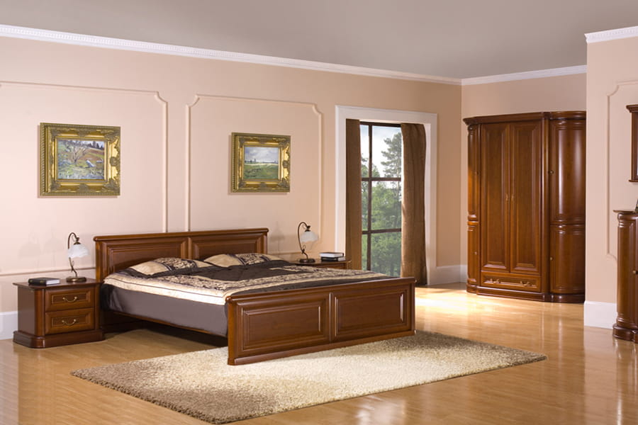 Łóżko sypialniane Moritz SDP-N ( niskie ) producenta Latzke świetnie wkomponuje się w przestronne i elegancko umeblowane wnętrze sypialni. Jego rama w części wezgłowia oraz przedniej płyty jest udekorowana stylowym rzeźbieniem, które ma podkreślać jego wyjątkowy, pełen elegancji i wdzięku charakter. Domyślny kolor dla tego produktu to czereśnia antyczna.