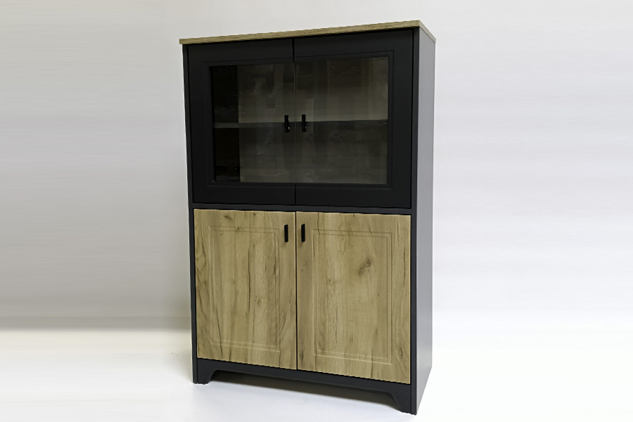 - Witryna składa się z części dwudrzwiowej oszklonej, dolnej szafki. Wewnątrz znajdują się półki
