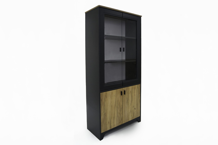 - Witryna składa się z części dwudrzwiowej oszklonej, dolnej szafki. Wewnątrz znajdują się półki