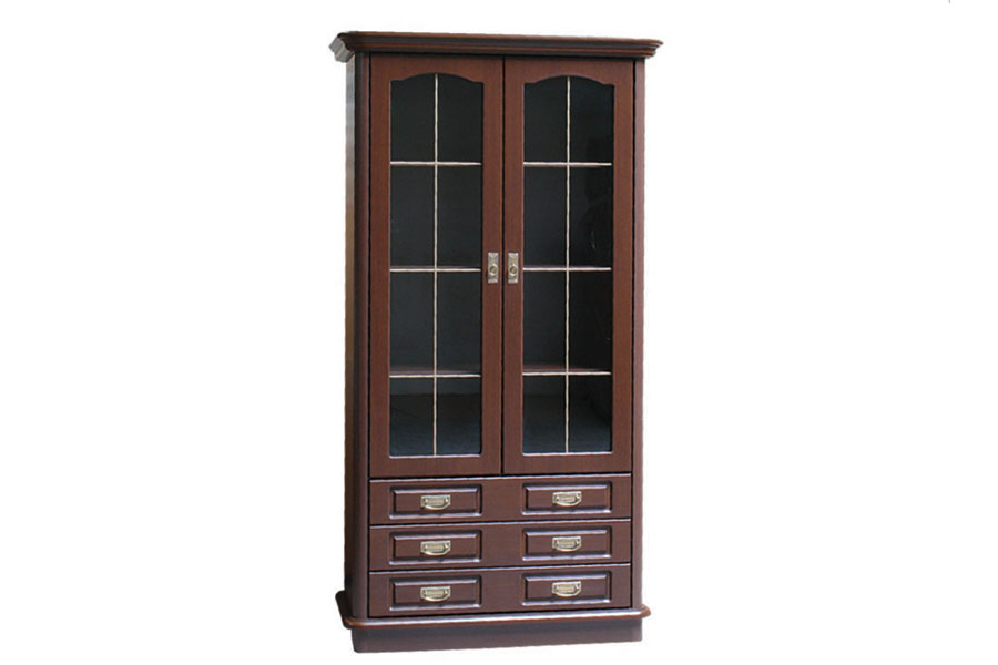 - Witryna składa się z części dwudrzwiowej częściowo przeszklonej oraz trzech szuflad.