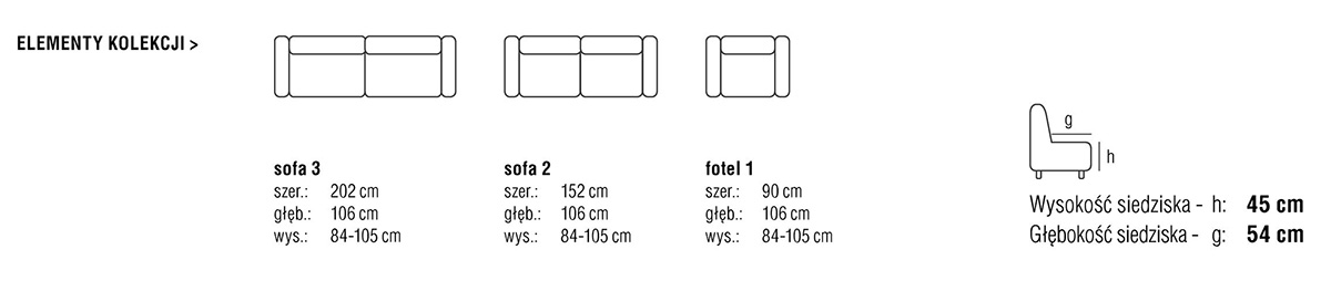 - głębokość siedziska - 54 cm