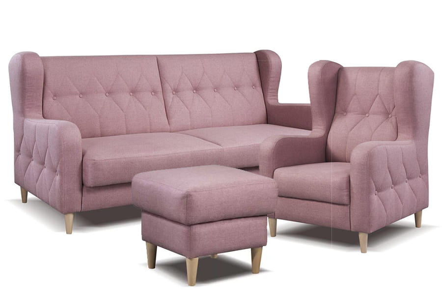 - zestaw wypoczynkowy: kanapa z fotelem i pufą